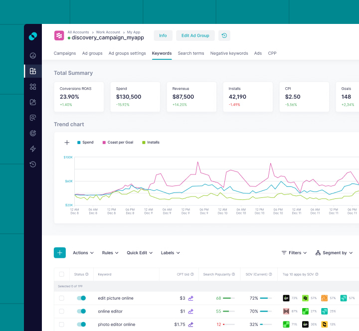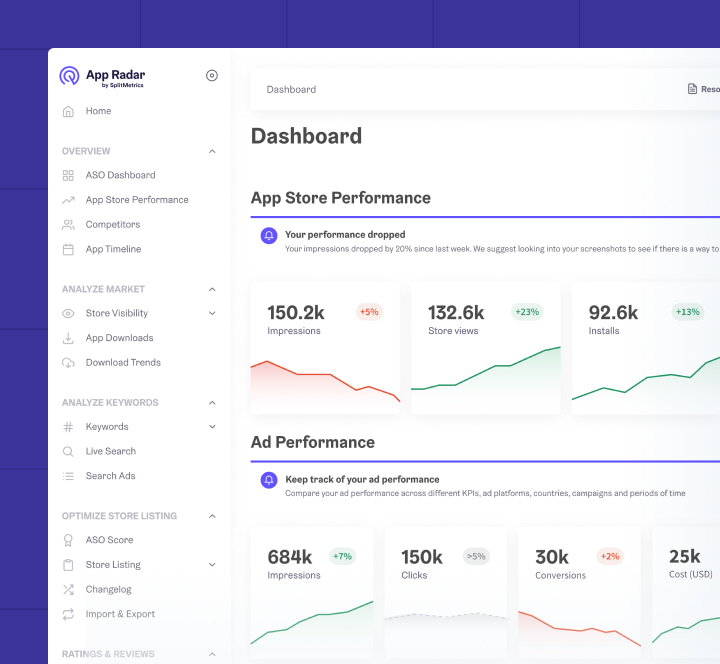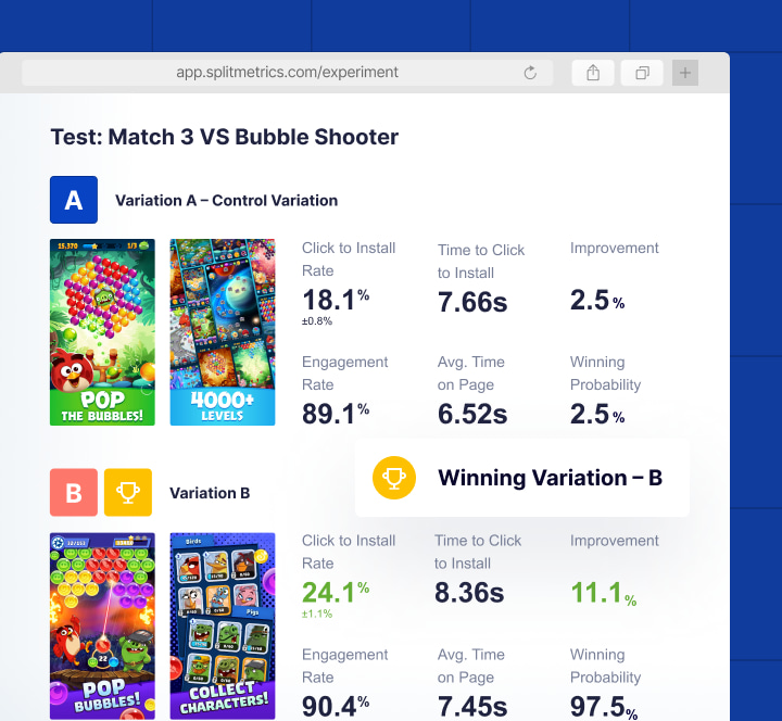 Leverage SplitMetrics’ AI-driven app store growth platform with market intelligence to scale user acquisition, increase team efficiency, and make data-backed decisions.