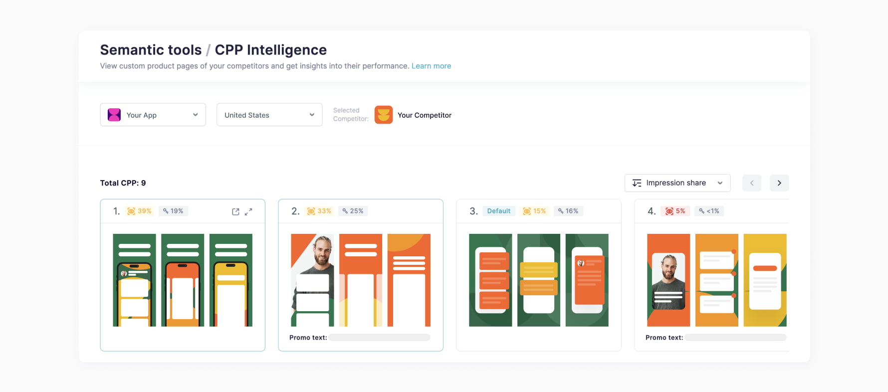 Stay ahead of the competition and maximize your app’s potential with SplitMetrics’ CPP Intelligence tool. Unlock valuable insights to enhance your custom product pages and drive success on the App Store.