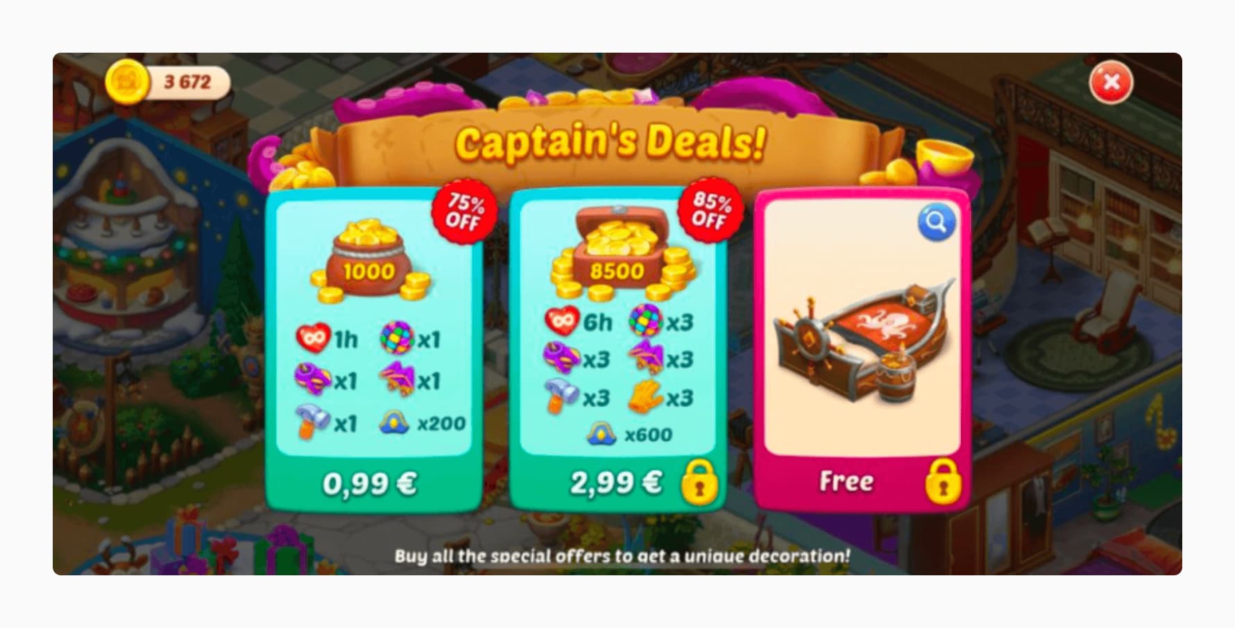 Your game has an in-game shop, however a rather big part of your revenue will be coming from special offers – in which you lower pricing for your standard shop products or provide additional value for the same money. Unlike LiveOps retention and engagement tactics, special offers’ impact on monetization is easily measurable and immediate – that’s why they are one of the favorite and most effective LiveOps tools out there. You create an offer, players make purchases, and you evaluate the sales metrics.