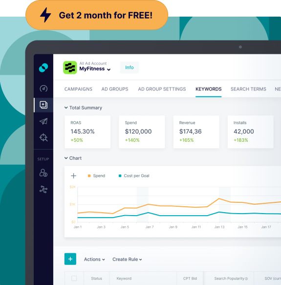 Leverage 200+ automation rules, smart bid suggestions and alerts to track key metrics.