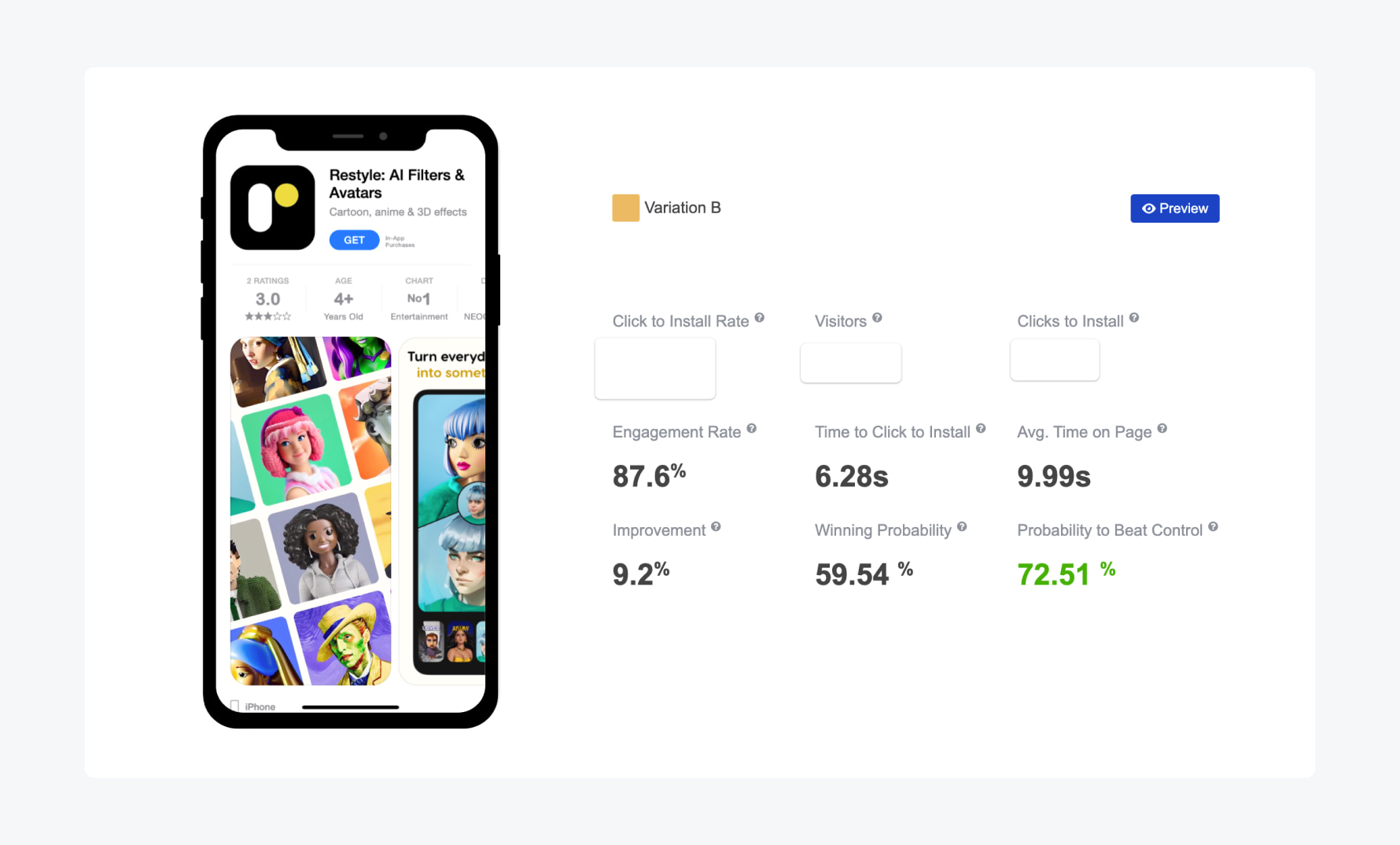 By leveraging SplitMetrics Acquire and optimizing the product page, the app achieved remarkable results: