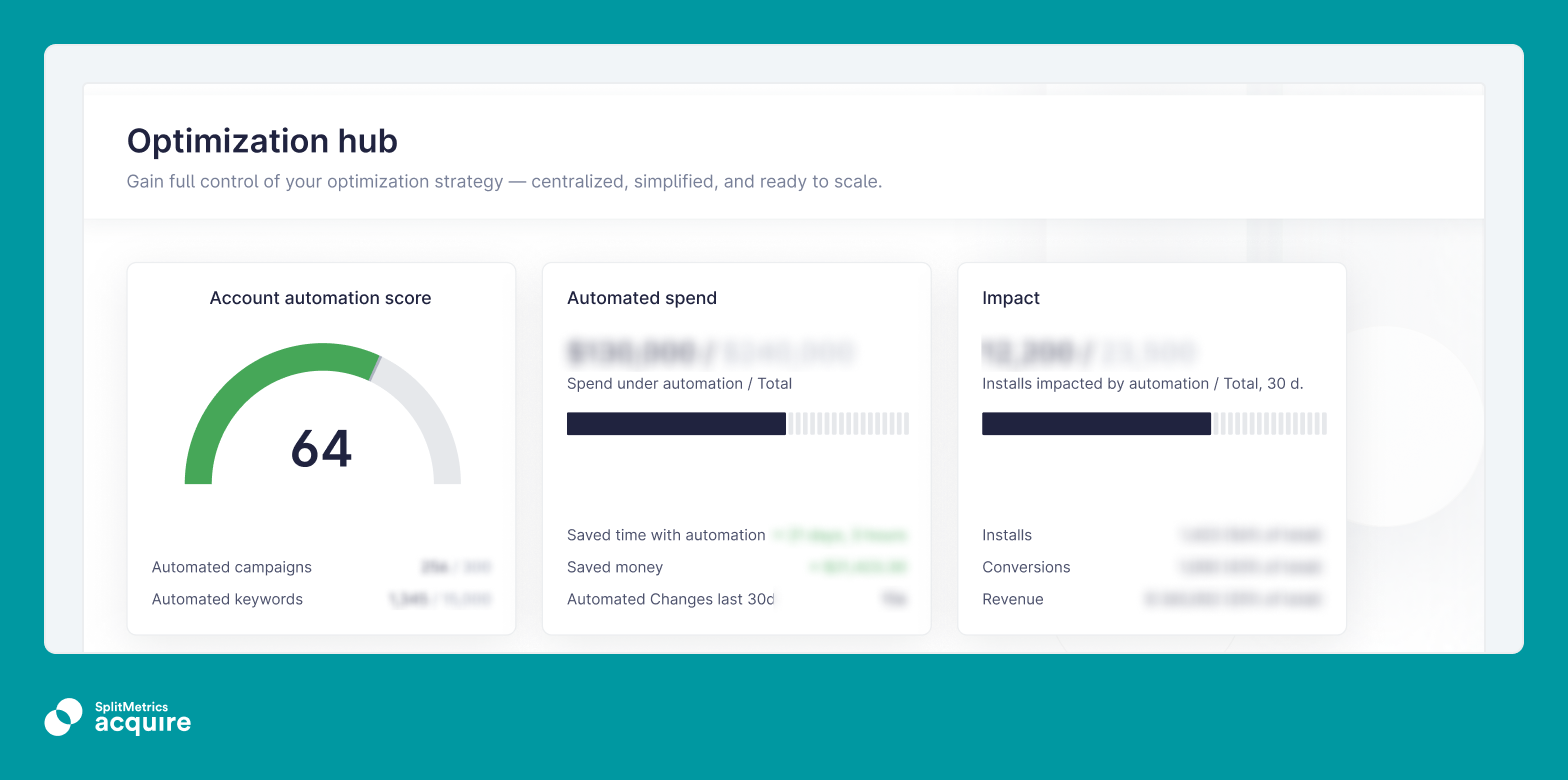 I use SplitMetrics Acquire pretty much daily. In terms of reporting, it helps a lot to see the competitive reviews, who’s bidding on us, and where we’re showing up. It’s also good to see the insights on how we’re spending and at what times we’re spending. We’ve implemented AI and automation rules to maximize our spend when we’re showing up and reduce it in other cases.