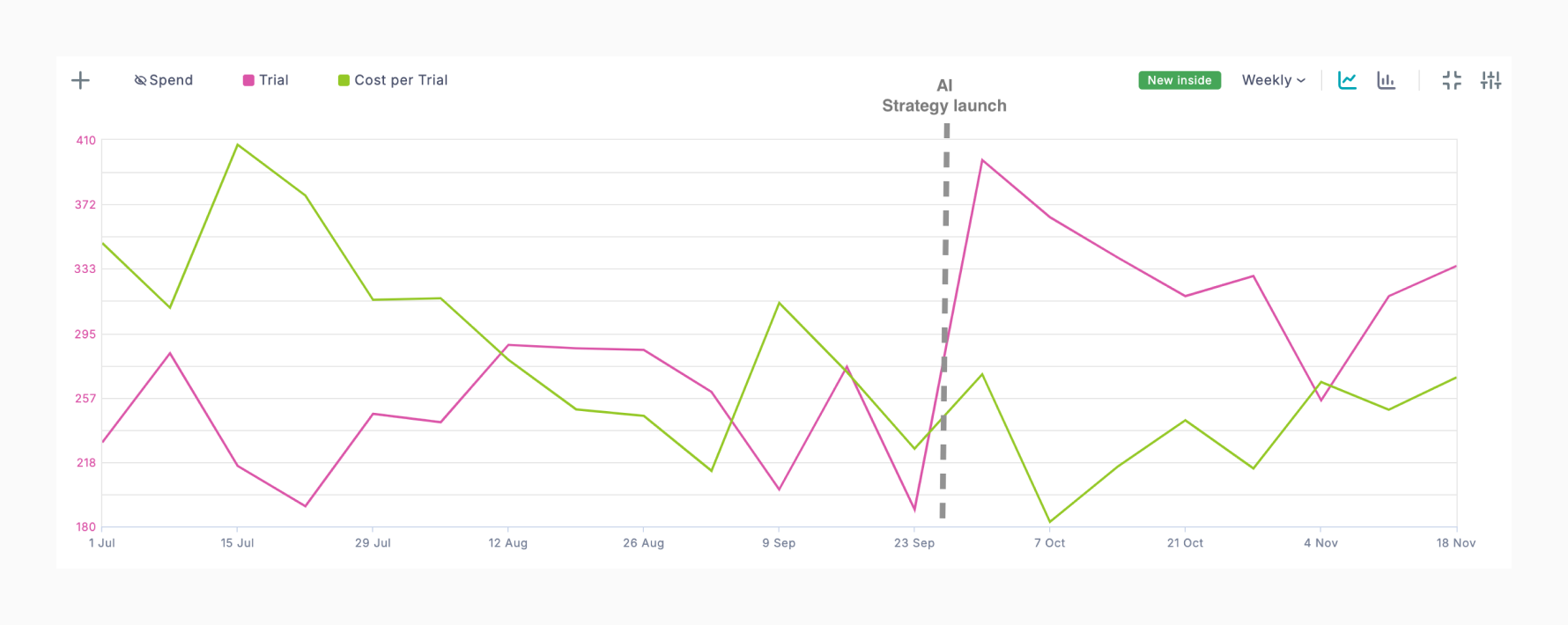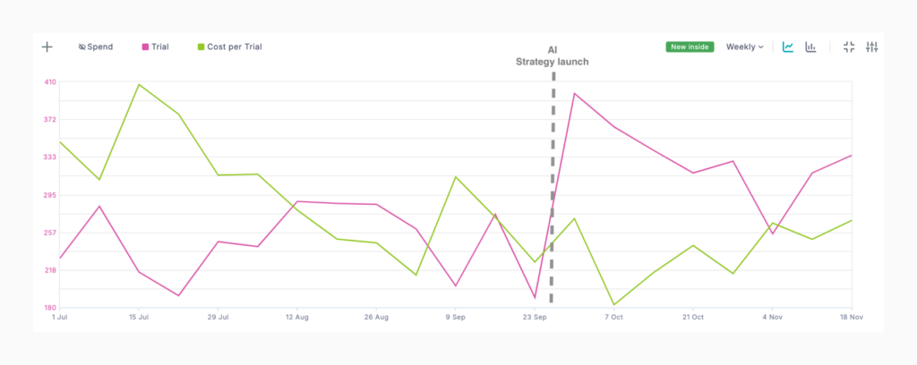 The primary goal was to enhance campaign efficiency, reduce user acquisition costs, and increase the number of trial users — all while maintaining a high conversion rate.