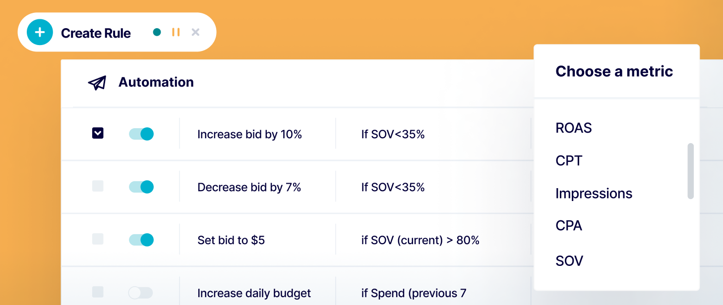 SplitMetrics Acquire allows for automation of all processes related to Apple Ads management, like performance based adjustments to bids, moving of keywords between ad groups or even changes to CPA goals. SplitMetrics Acquire also offers a lot of smart alerts to be configured, only requiring occasional attention and supervision. Share of Voice (SOV) can serve as an additional condition for scaling rules.