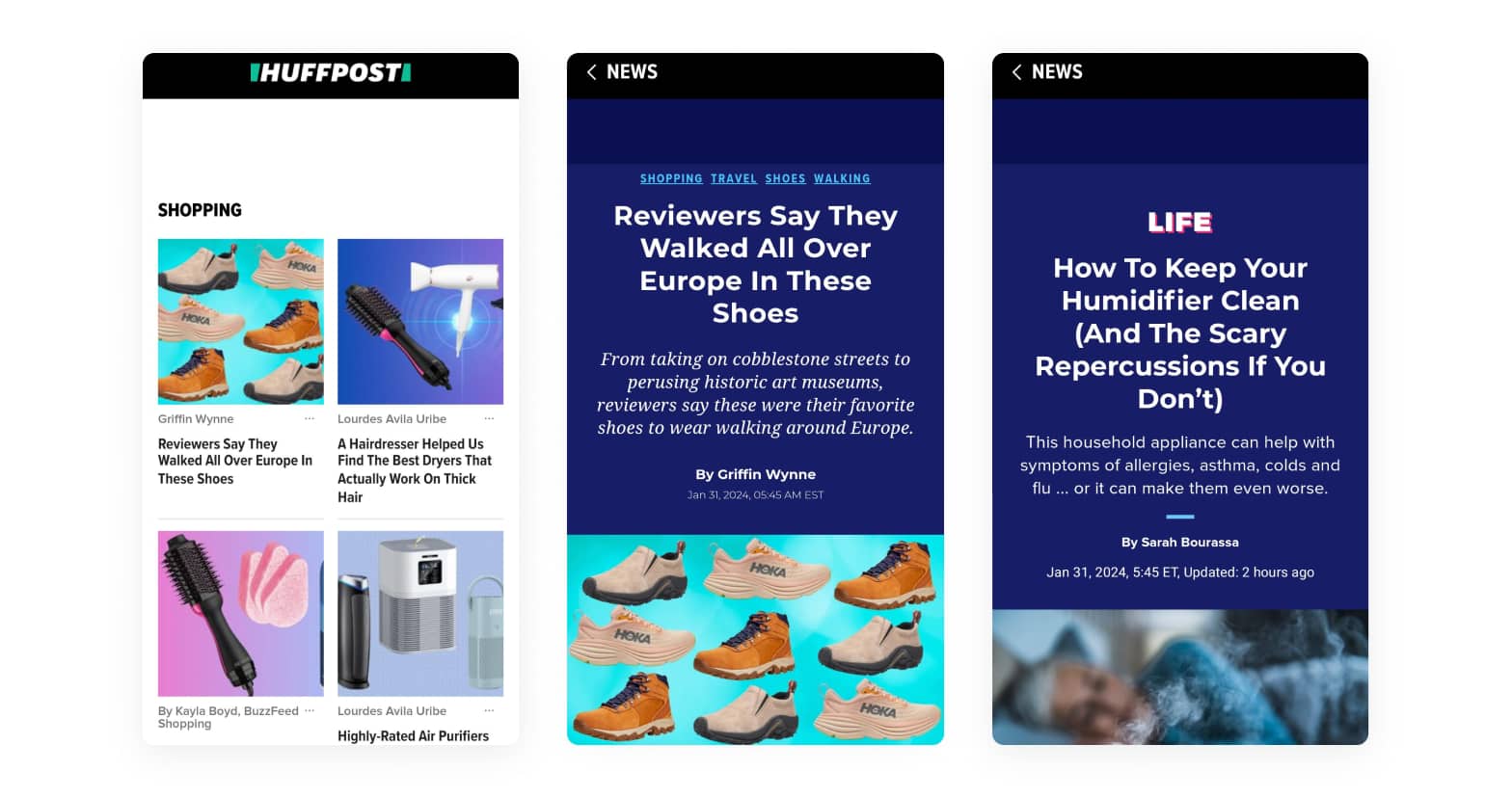 A collection of native ads, displayed in the Huffington Post media app for Android.