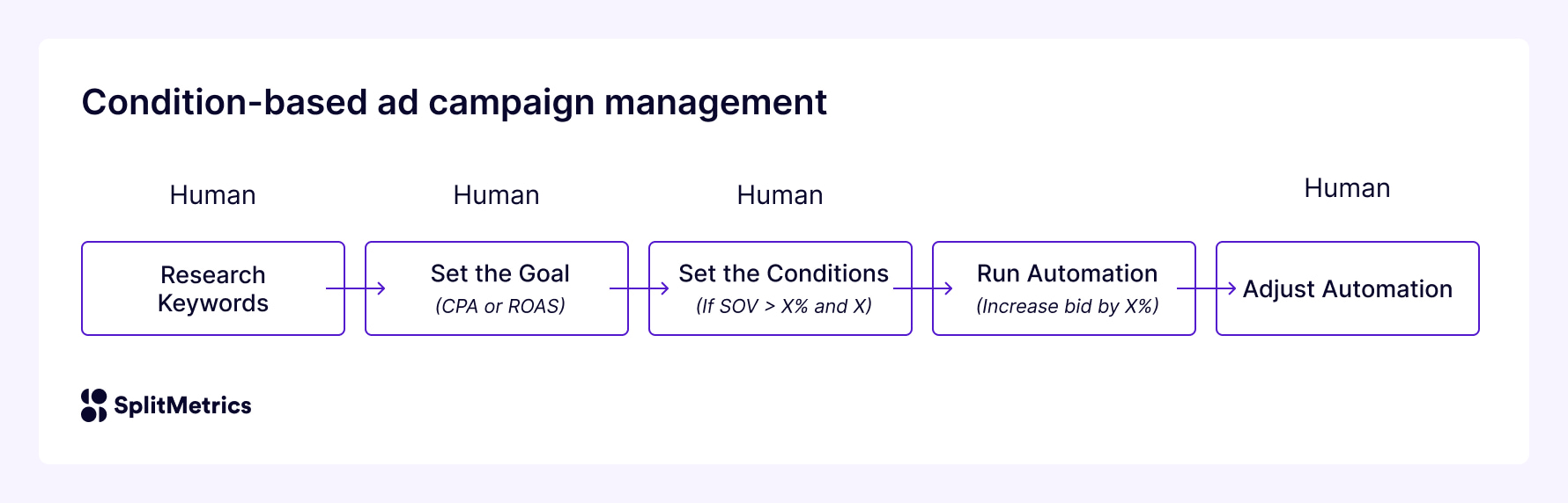 Introducing condition-based strategies that utilize machine learning algorithms (ML) was a significant step forward, following the automation rules for which SplitMetrics became well known.