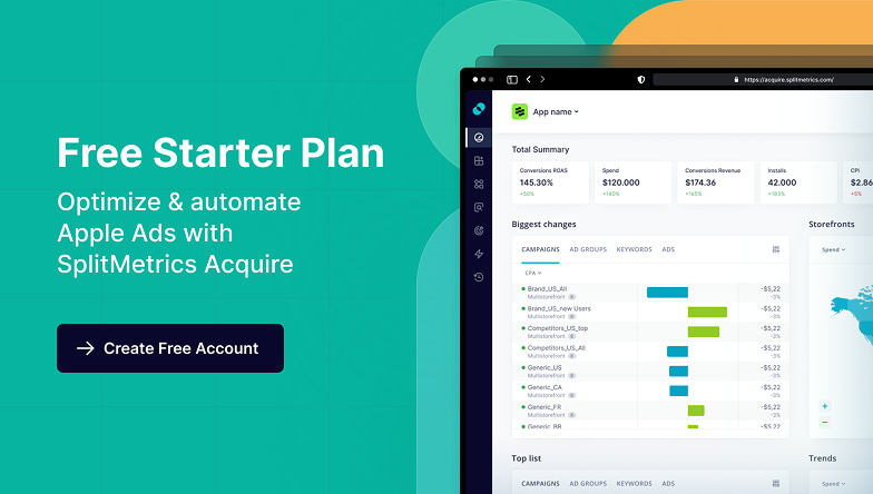 “We found an opportunity to see Share of Voice in the SplitMetrics Acquire platform extremely useful. We can instantly see our position and understand what we shall do with the bids at that exact moment without the need to download any CSV reports! That’s amazing! We are planning to set up the automation using these metrics in the future. Thanks for the new release!”