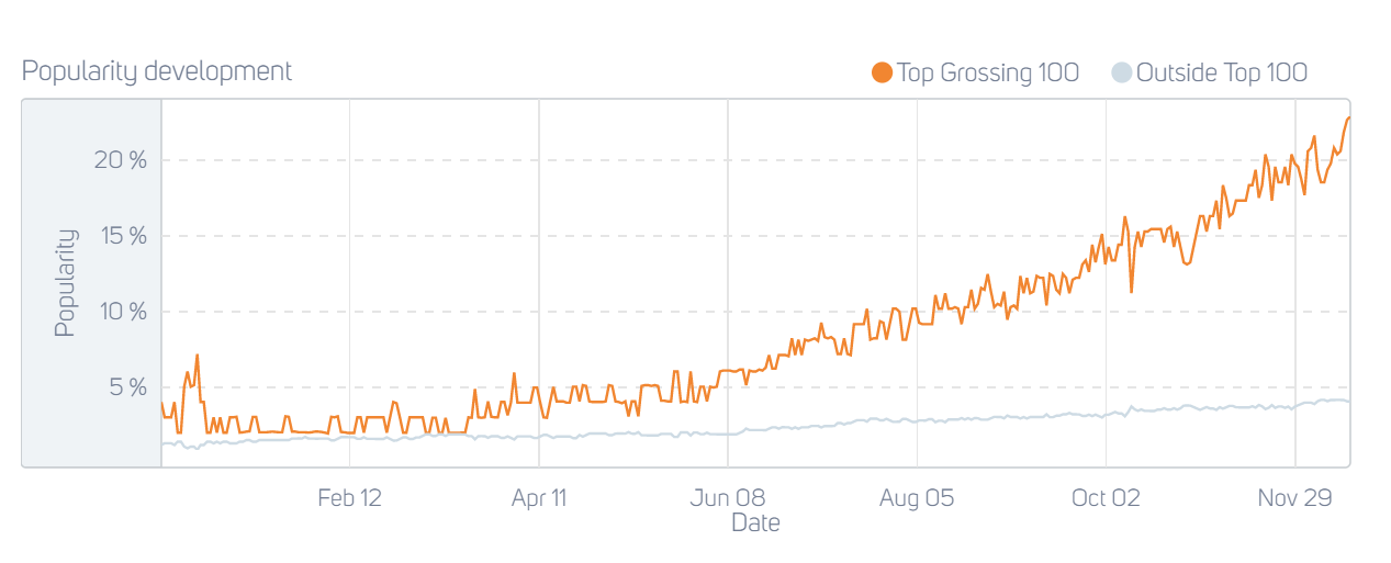 Despite these frustrations, this battle/season pass model is incredibly lucrative, which is why more games adopt it. According to relatively recent data from 2019, over 20% of top-grossing mobile games feature some variation of this monetization scheme, and the rates only seem to be rising each month. It’s incredible how many mobile games have adopted this model since then.