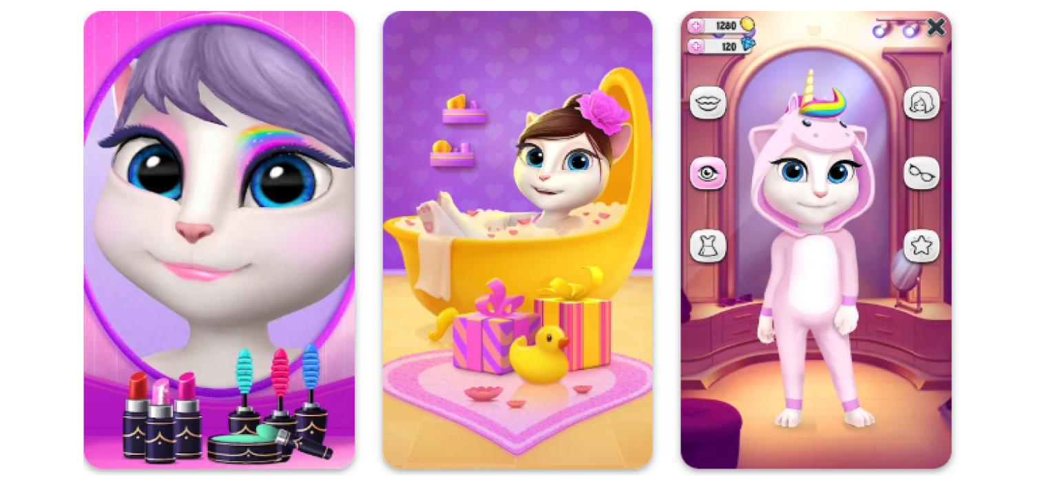 My Talking Angela is a virtual pet game where Angela, a singing‑and‑dancing cat, is cared for, styled, and played with through makeup, fashion, and mini‑activities.