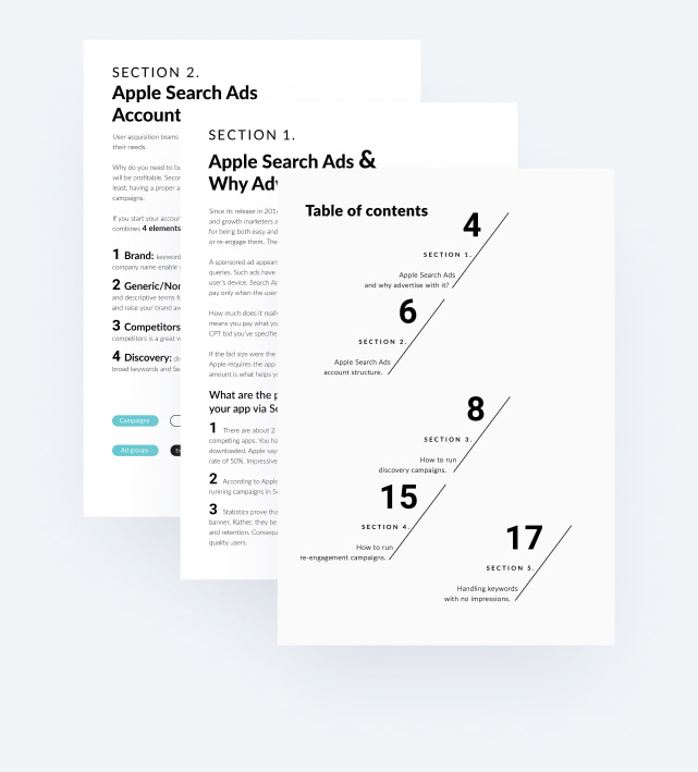 Explore the most efficient ways of empowering your Apple App Store ads. Written by SplitMetrics Acquire experts, Apple Ads Handbook can be your single go-to source of advanced level information on Apple Ads – account setup, management, and optimization.