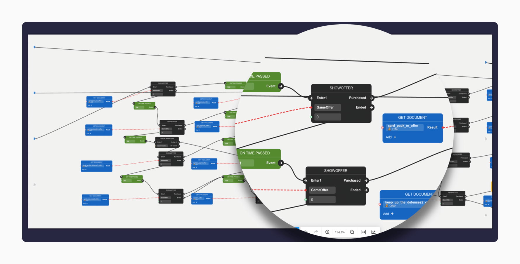 Another weakness of working with JSONs is that it’s more difficult to create offer dependencies (when one offer follows another one) and completely impossible to visualize these offer journeys. Offer journeys are the best approach to creating offers in games, because they take into account previous history of behavior and purchases. It allows to personlize shopping experiences, which translates into better conversion rates and higher checks from dolphins and whales. For example, when Hot Siberians created a promo journey with Balancy, it helped them to increase conversion by 37% and ARPPU by 50%.