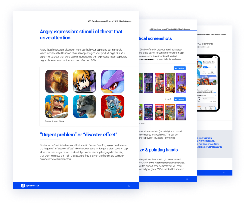 “ASO Benchmarks & Trends 2020. Mobile Games“ is based on the aggregated behavior data of 70 million app store users tracked during A/B experiments on SplitMetrics Optimize.