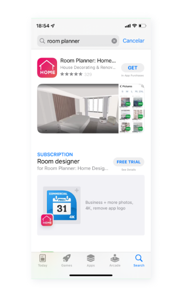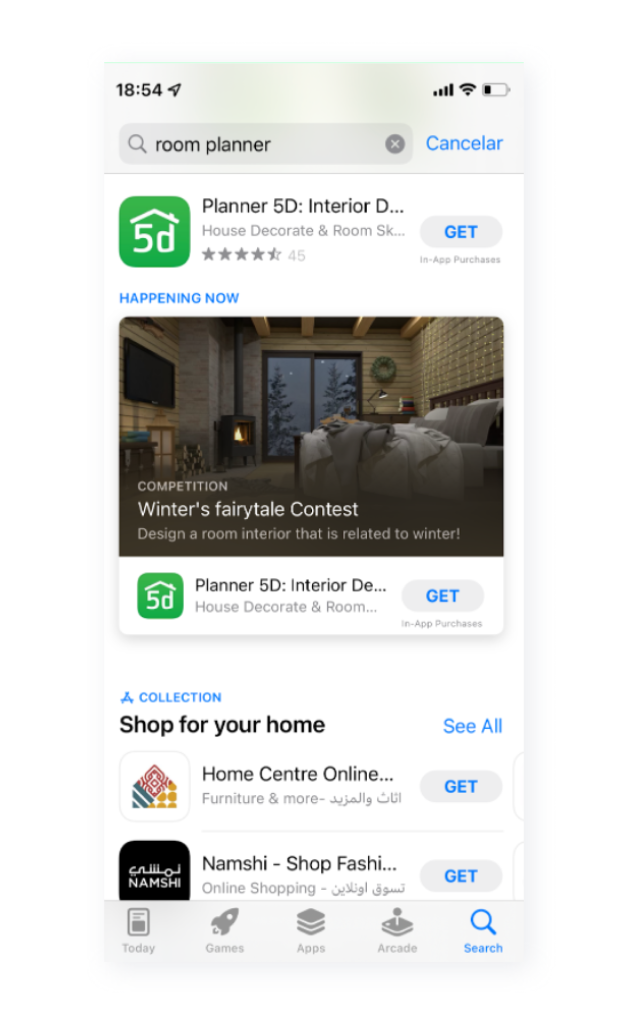 It also can be in-app events and suggestions in the search results for branded queries. In the screenshot below you see In-App Events for the Planner 5D app.