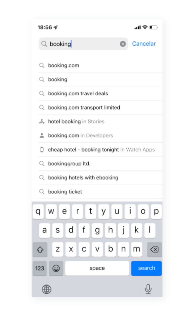 Sometimes while searching for branded apps, you will see the icon and title of this app in the search results. But it works only for some queries — for others, you will see just suggestions.