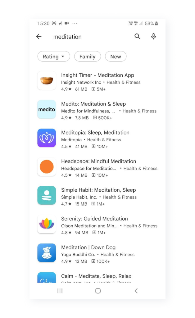 The main difference between search results in the App Store and Google Play is the ability to see screenshots. Because of screenshots in the App Store, users see fewer apps on one screen than in Google Play. If your app has ten positions per search query in the App Store, the user should flip the screen 5 times to get to your app. While in Google Play they will see your app on the second screen. That is why in the App Store it is more important to get to the top for selected queries, otherwise, most users won’t reach your app.