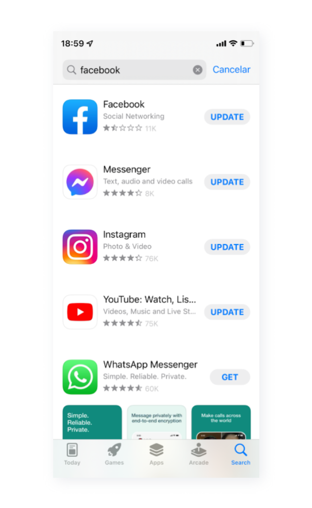To understand how to create the best metadata for app promotion, we should learn the specifics about search results on the App Store and Google Play. We will show several ways the search results might look.
