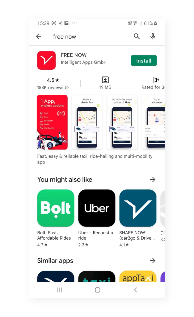 The first and second search results can be also occupied by ads. The search results on branded queries are different: you first see the branded app and its screenshots and then apps that users may also like.