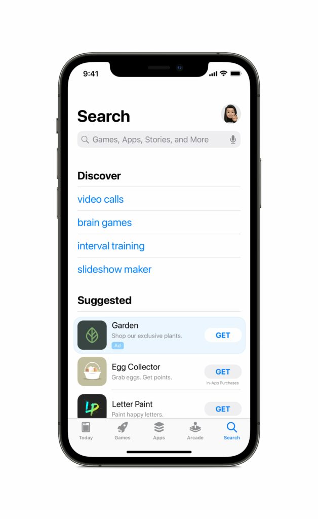 In the Search section on the App Store, users first see popular search queries as well as apps that are running Apple Ads campaigns.