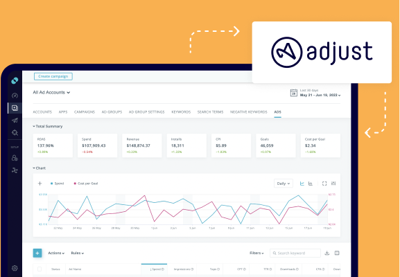 Attribute 100% of data, get a full-funnel view with the Adjust integration, and optimize your ads – all in one dashboard.