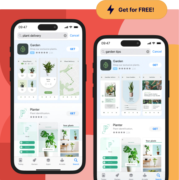 Buy Fully-managed Apple Ads services and get 2 complimentary custom product page designs with up to 4 screenshots.