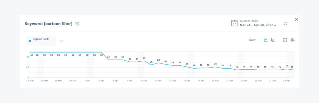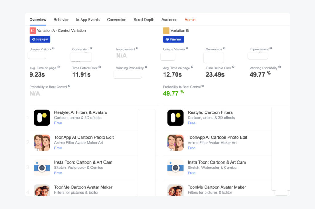 The Client aimed to verify whether mentioning the keyword “cartoon” in the title would enhance conversion. The Top Charts was deemed the most suitable option for testing this hypothesis for app’s icon and title.