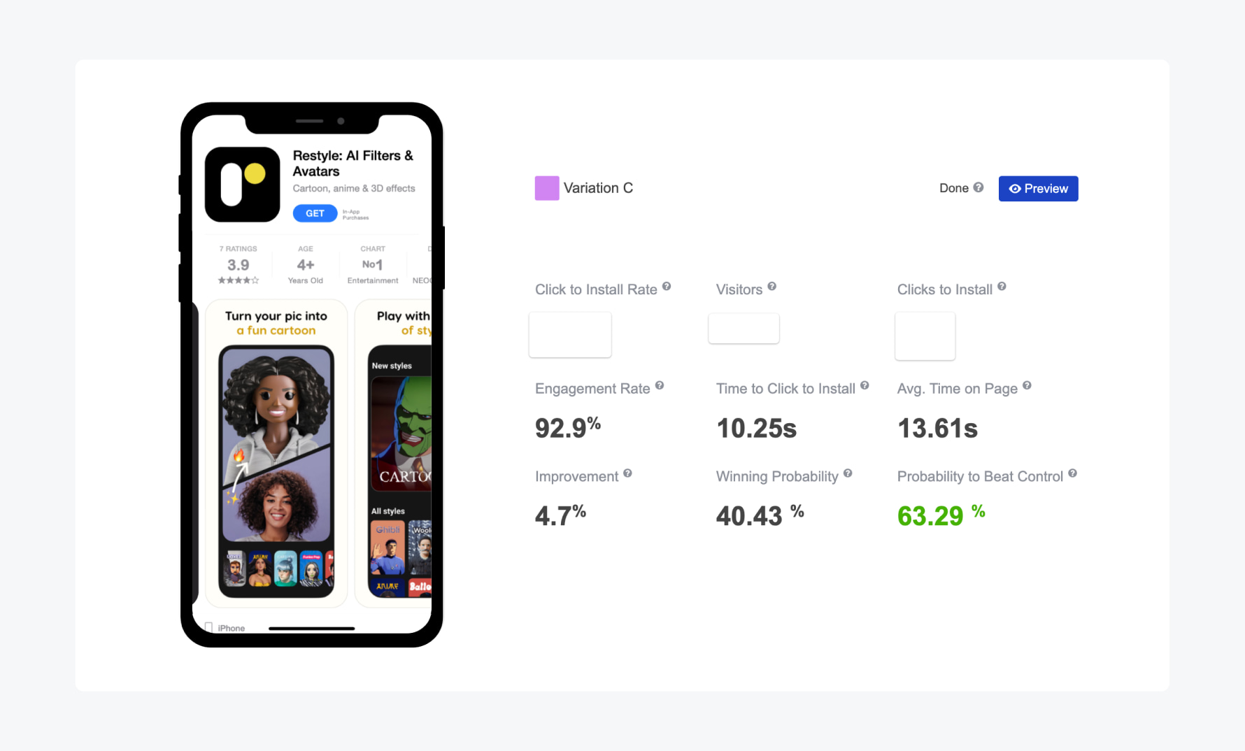 By leveraging SplitMetrics Acquire and optimizing the product page, the app achieved remarkable results:
